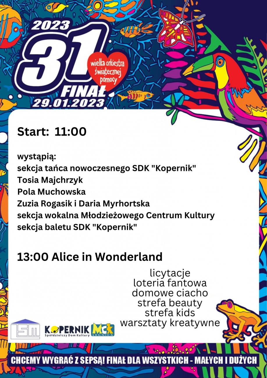 Także w tym roku SDK „Kopernik” włącza się w tę niesamowitą akcję. Spółdzielczy Dom Kultury zaprasza już o godzinie 11.00. Na scenie zaprezentują się kopernikowe sekcje taneczne, zdolne pianistki, Pola Muchowska, Tosia Majchrzyk oraz wokaliści z Młodzieżowego Centrum Kultury. W tę jedyną w roku, szczególną niedzielę nie zabraknie atrakcji zarówno dla najmłodszych, jak i tych nieco starszych.