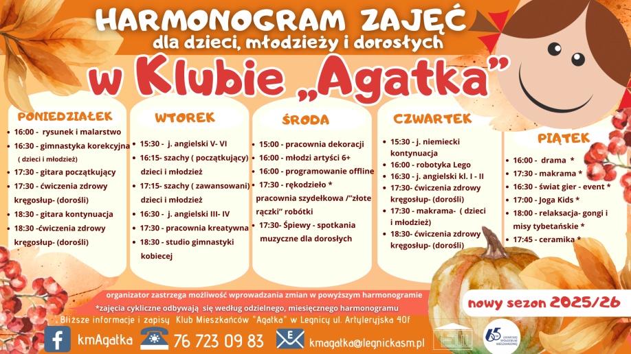02 Wrz Harmonogram zajęć w KM Agatka wrzesień 2, 2025 wielkość czcionki Zmniejsz czcionkę Powiększ czcionkę Wydrukuj Email Tweet Dział: Aktualności Czytany 129 razy Powrót na górę