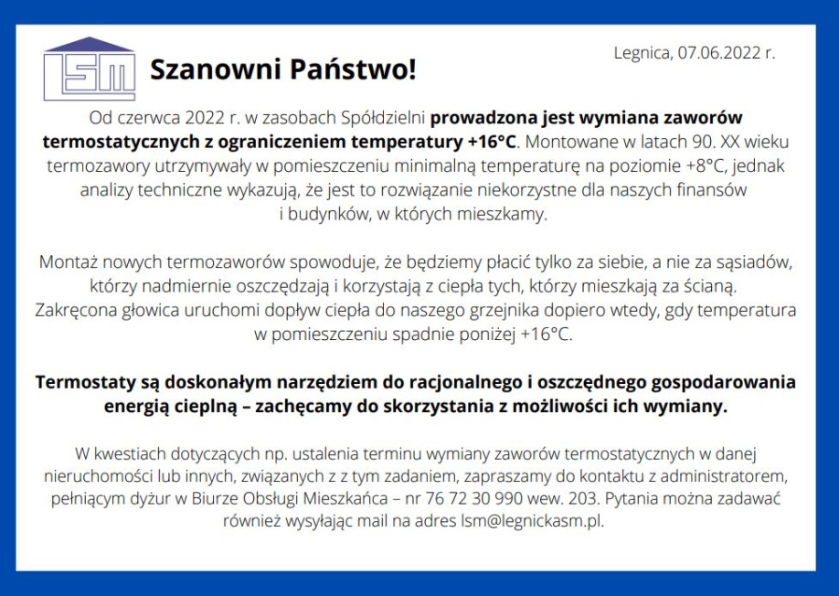 07 Cze Wymiana zaworów termostatycznych czerwiec 7, 2022 wielkość czcionki Zmniejsz czcionkę Powiększ czcionkę Wydrukuj Email Tweet Dział: Aktualności Czytany 625 razy Powrót na górę