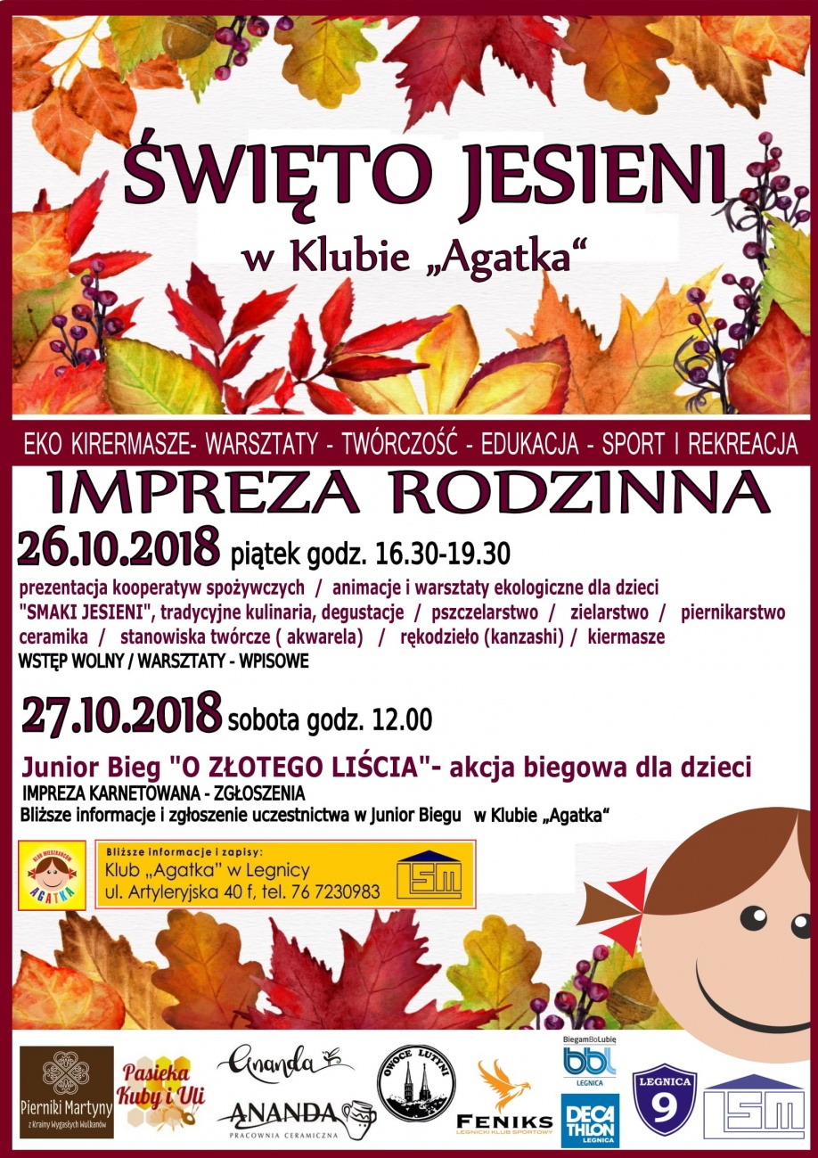 Spółdzielczy Klub Mieszkańców „Agatka” zaprasza na coroczną weekendową imprezę otwartą. Klubowe „Święto Jesieni” to w założeniu event o charakterze uczestnictwa rodzinnego. Zatem jak co roku nie może zabraknąć atrakcji dla dzieci, młodzieży oraz osób dorosłych. W programie szereg różnorodnych atrakcji: kiermasze, warsztaty, pokazy, akcje sportowo- rekreacyjne.