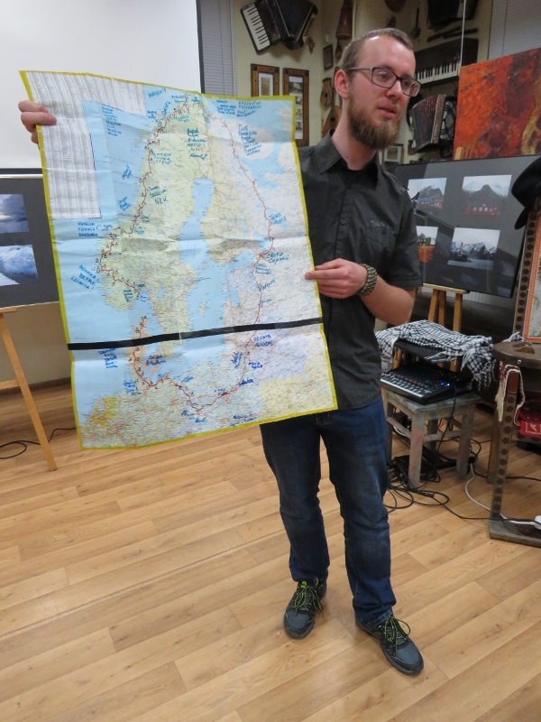 Kolejną niezwykłą odsłoną wieczoru z relacją z polowań na niezwykłe zjawisko zorzy polarnej uraczył podczas spotkania Dariusz Borowiec. Znany już z wcześniejszych globetroterowych spotkań podróżniczych bohater spotkania zaprezentował obszerną wystawę fotograficzną z kilku swoich wspaniałych wypraw do dalekiej północy.