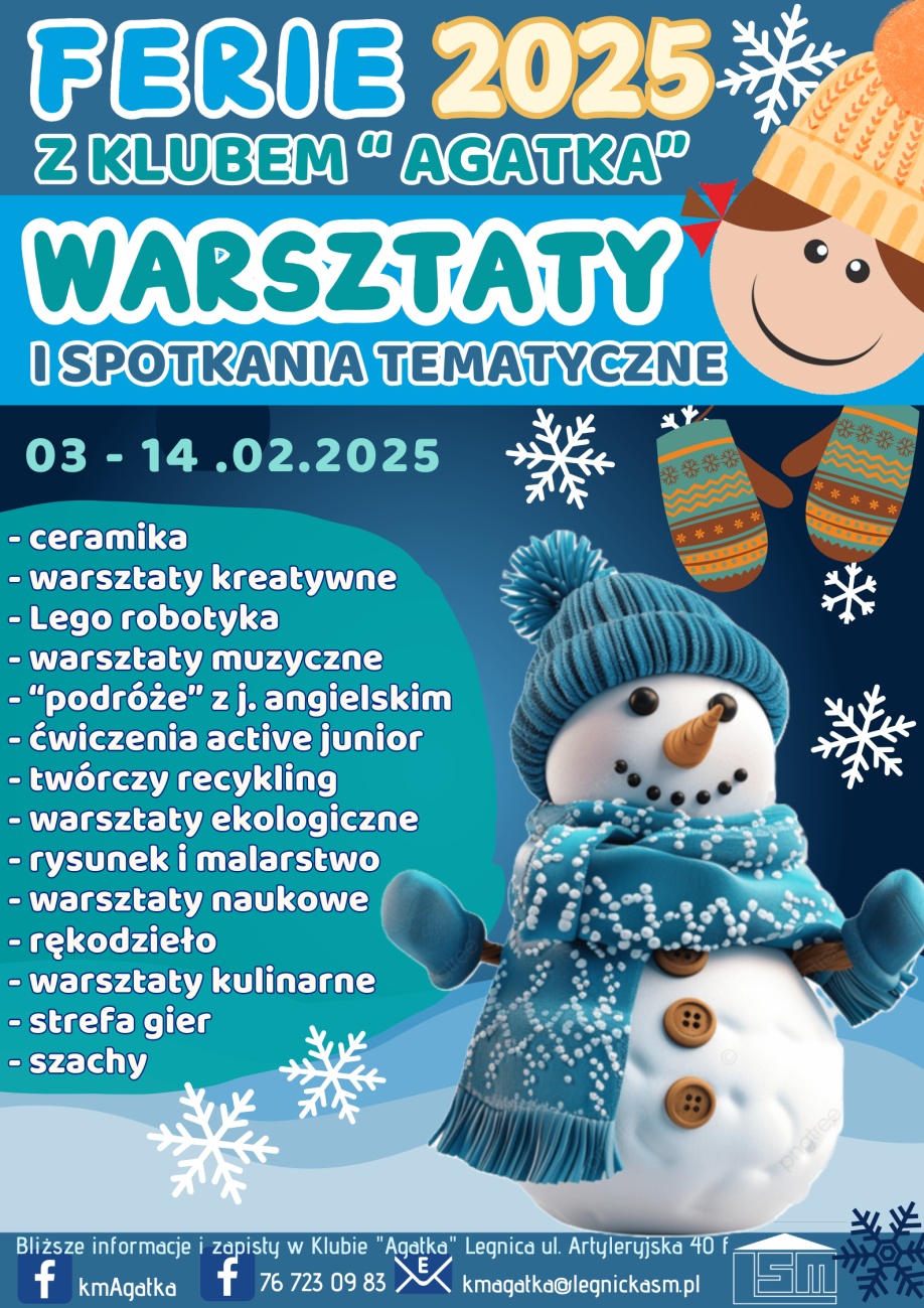 24 Sty Ferie z klubem Agatka styczeń 24, 2025 wielkość czcionki Zmniejsz czcionkę Powiększ czcionkę Wydrukuj Email Tweet Dział: Aktualności Czytany 139 razy Powrót na górę