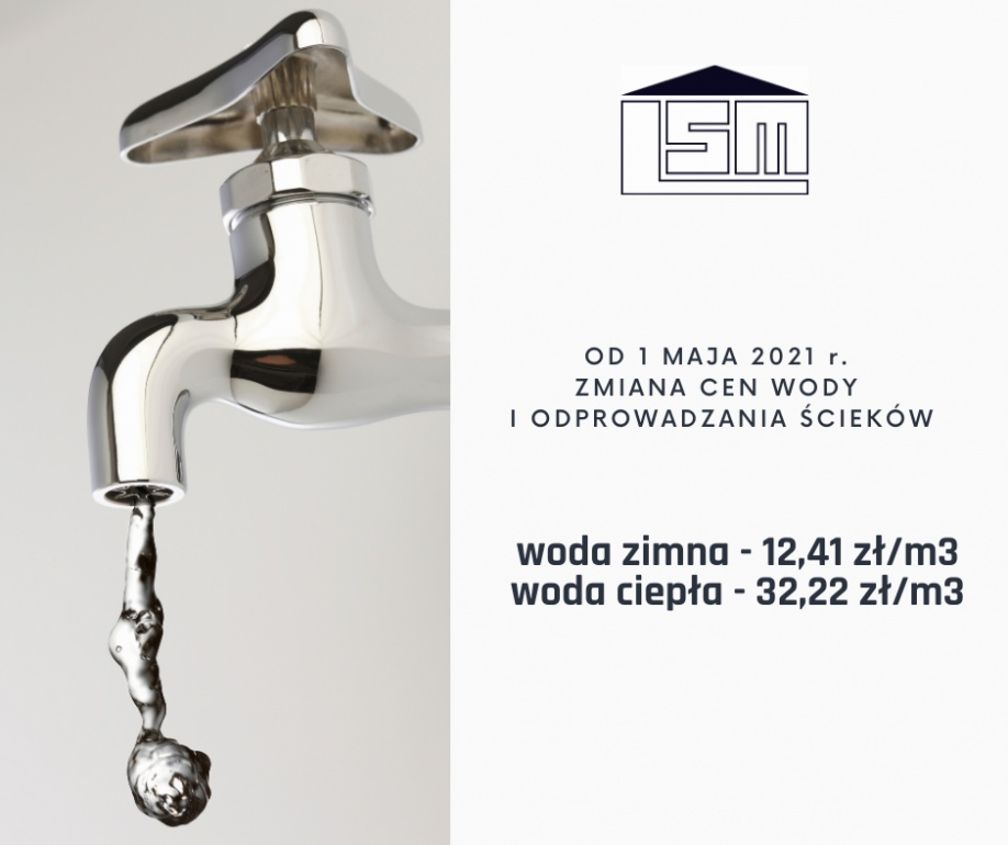 dostawy wody i odprowadzania ścieków w LSM od 1.05.2021 r. opłaty za wodę należy wnosić na podstawie zużycia, wskazując w opisie wpłat aktualne stany wodomierzy. Koszt wody
