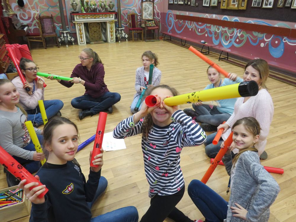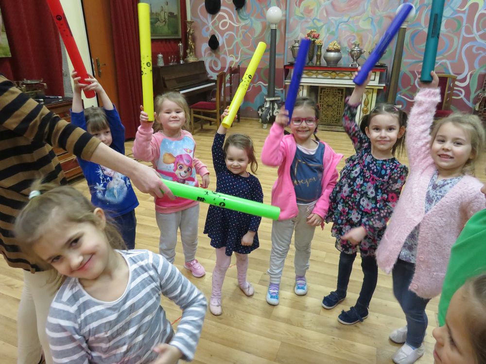 TĘCZOWA ORKIERSTRA – zajęcia aktywizujące i rozwijające dzieci rytmicznie i muzycznie. W oparciu o różnorodne ciekawe techniki i instrumenty uczestnicy zajęć odkrywają bogaty świat dźwięków i możliwości wspólnej zabawy w muzykę.