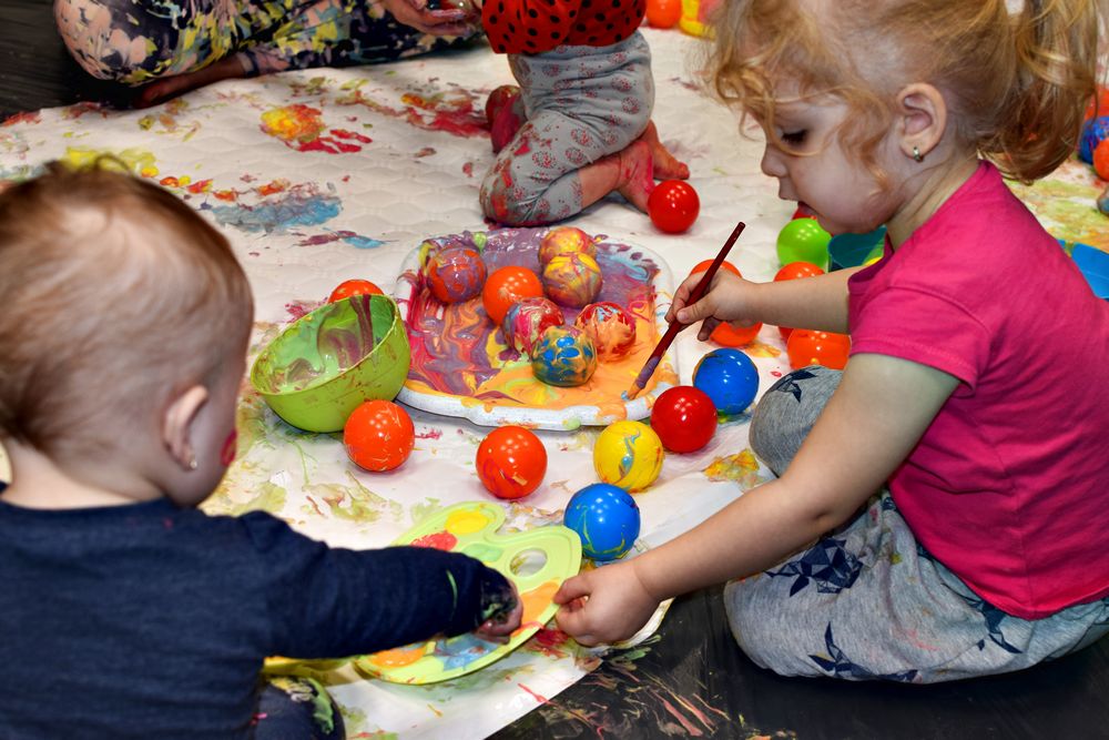 Nie pospieszamy, nie zachęcamy, dajemy dzieciom czas na oswojenie i zapoznanie się z otoczeniem. Robimy wszystko tak, aby dać dziecku możliwość spontanicznej samodzielnej zabawy, pozwalając tym samym na rozwój wyobraźni i kreatywności dziecka.