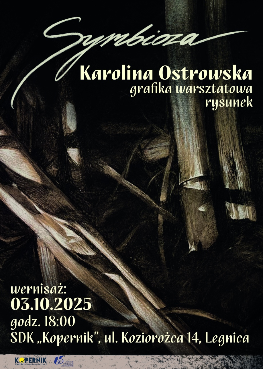 Zapraszamy na wernisaż wystawy „Symbioza” Karoliny Ostrowskiej, legniczanki, studentki grafiki na Akademii Sztuk Pięknych we Wrocławiu. Wernisaż odbędzie się w piątek, 3 października o godzinie 18:00 w SDK „Kopernik” w Legnicy przy ul. Koziorożca 14. W swojej twórczości artystka inspiruje się szczególnie przyrodą, z którą współistnieje i prowadzi cichy dialog. Na wystawie będzie można zobaczyć zarówno prace z zakresu grafiki warsztatowej, jak i wykonane w tradycyjnych technikach rysunkowych.