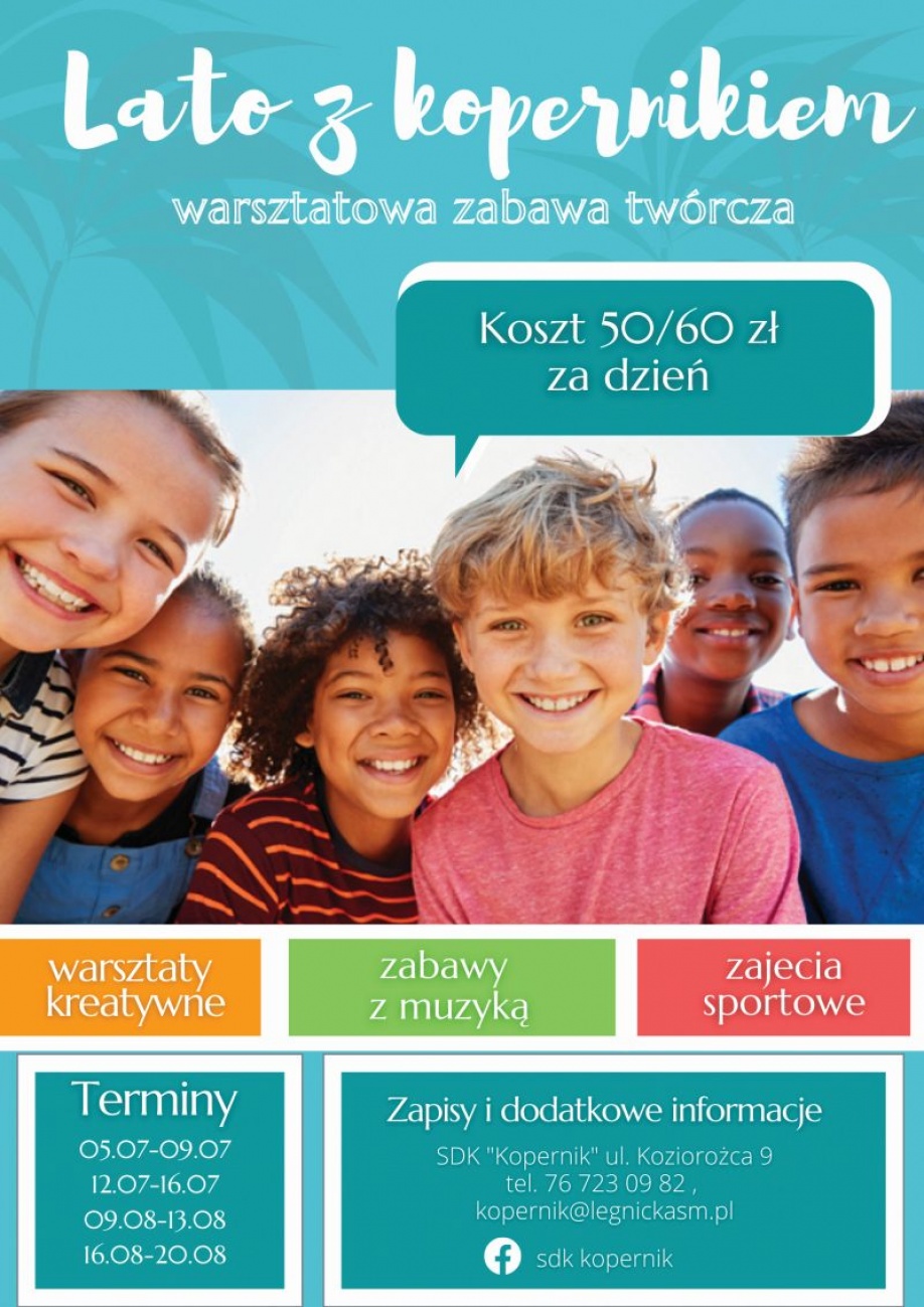 „Warsztatowe lato z Kopernikiem” – pod tym hasłem kryje się moc atrakcji, które przygotowujemy na tegoroczne wakacje. Uczestnicy kopernikowych warsztatów każdego dnia będą rozwijać swoją wyobraźnię, kreatywność oraz zdolności manualne. Wspólnie przeżyjemy morską przygodę, wybierzemy się w podróż w kosmos, staniemy się piratami, a nawet odwiedzimy Dziki Zachód.