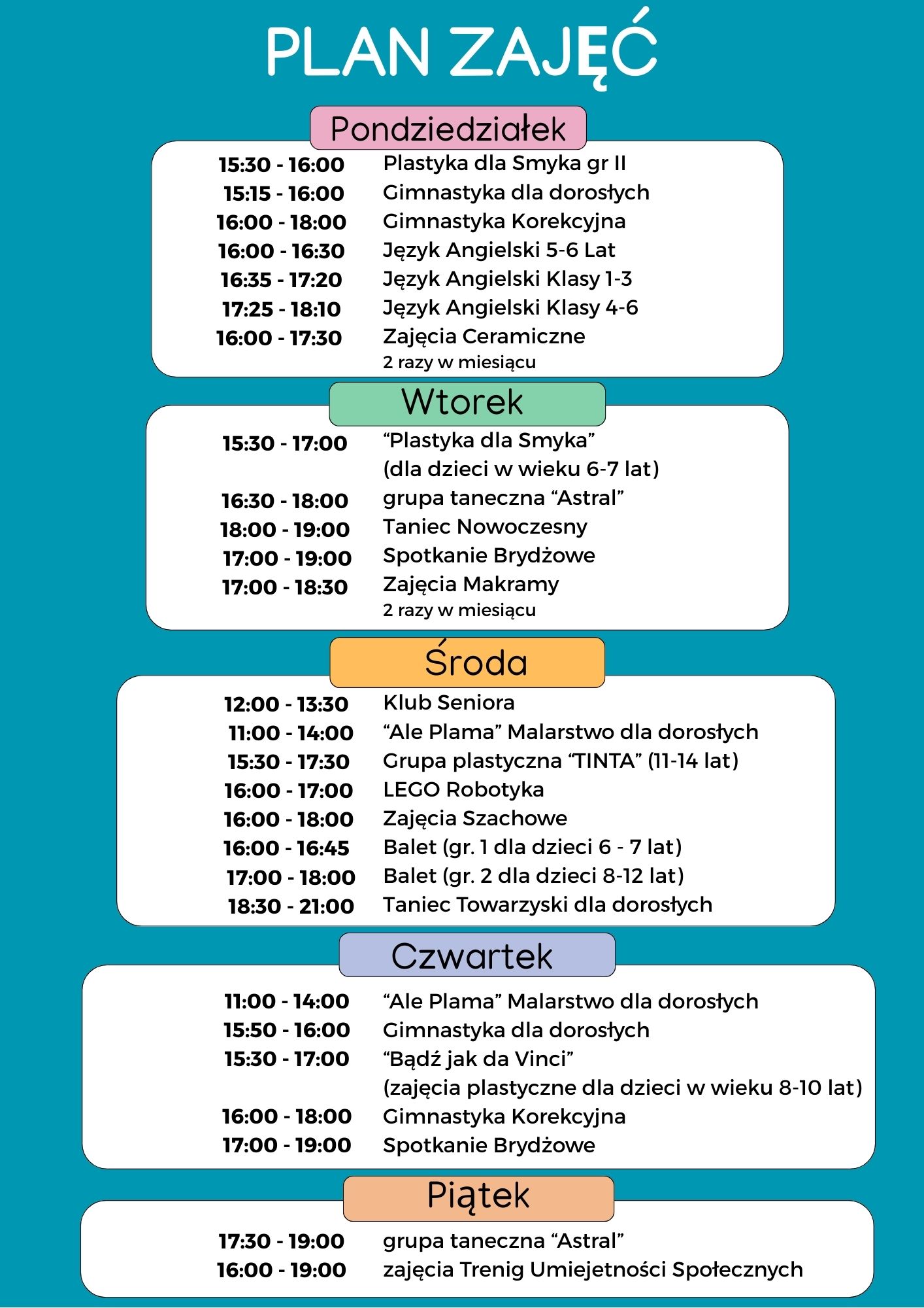 Plan zajęć SDK Kopernik 2025/2026