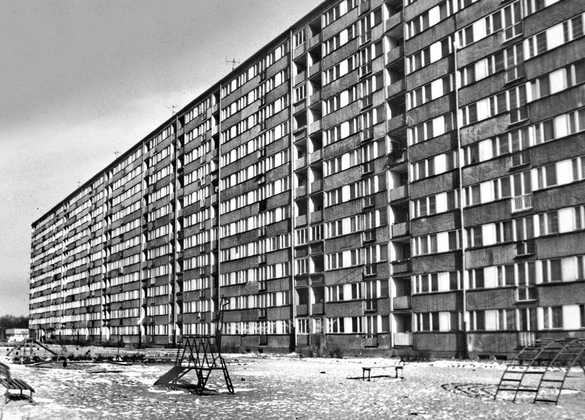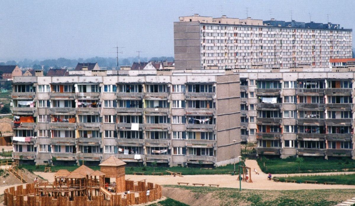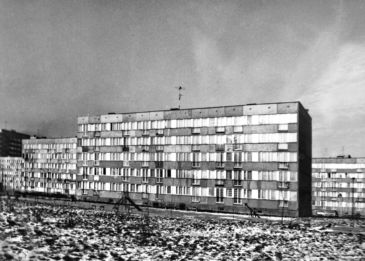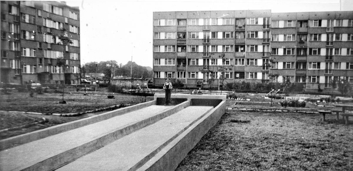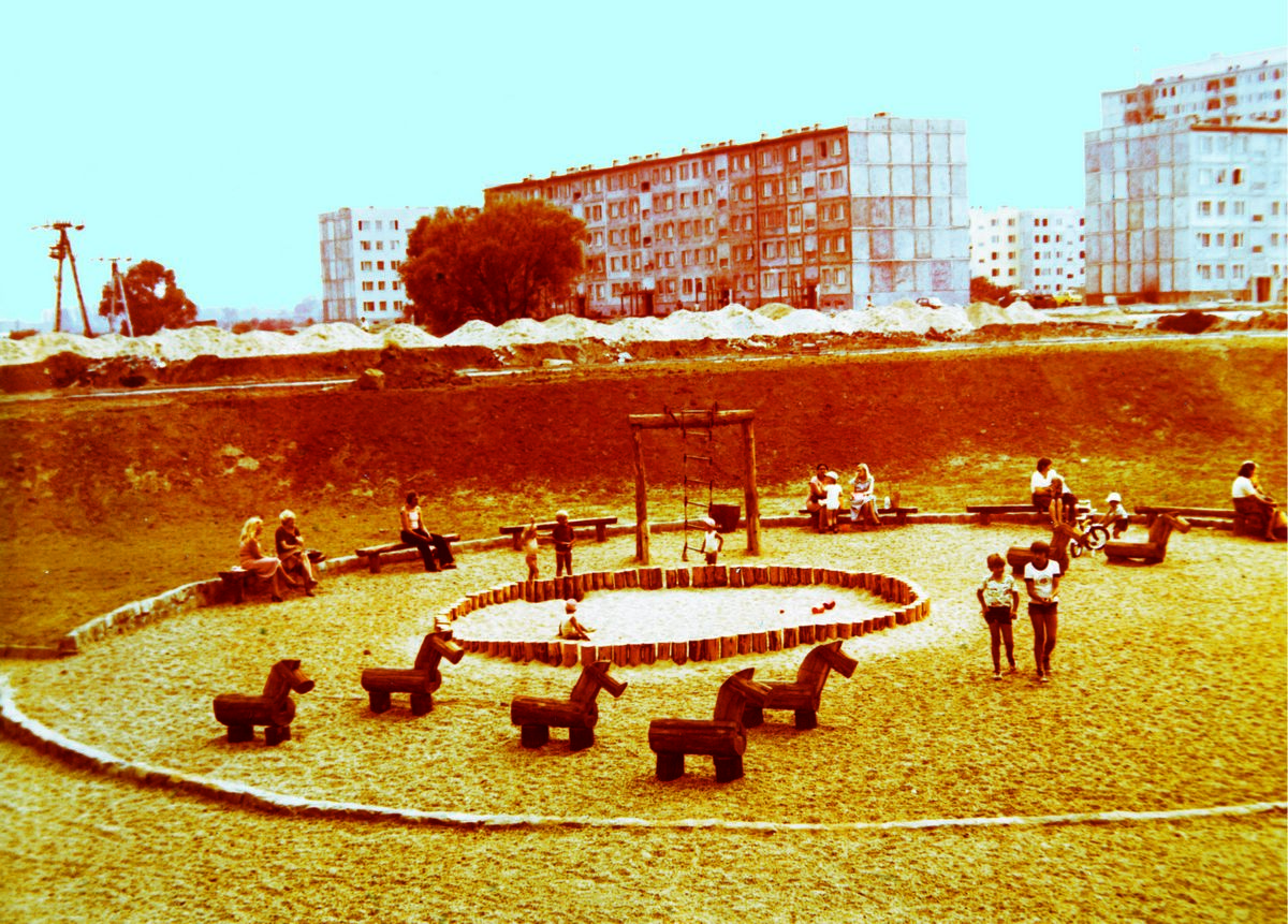 Słowiański Ogród Zabaw z widokiem na budynki przy ul. Marsa, Osiedle Kopernika IB, lata 70., mat. arch. LSM