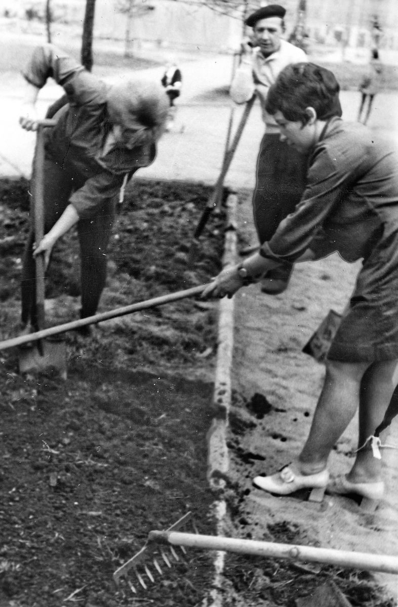Jedną z form działalności społeczno-wychowawczej była organizacja tzw. czynów społecznych, przy czym LSM wyróżniała się pod względem aktywności w tym zakresie. Zdjęcia dokumentują prace przy ul. Młynarskiej, Osiedle Śródmieście, mat. arch. LSM (25a i 25b)