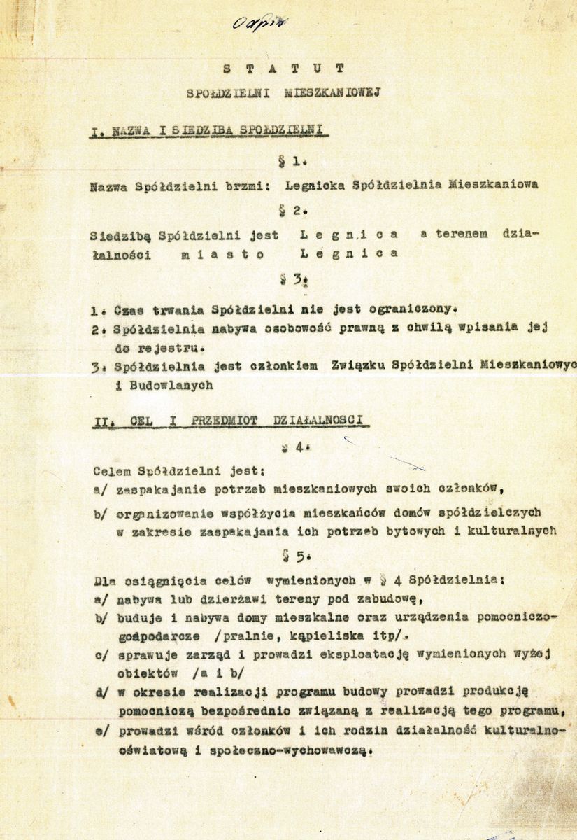 Historia działalności Legnickiej Spółdzielni Mieszkaniowej w Legnicy