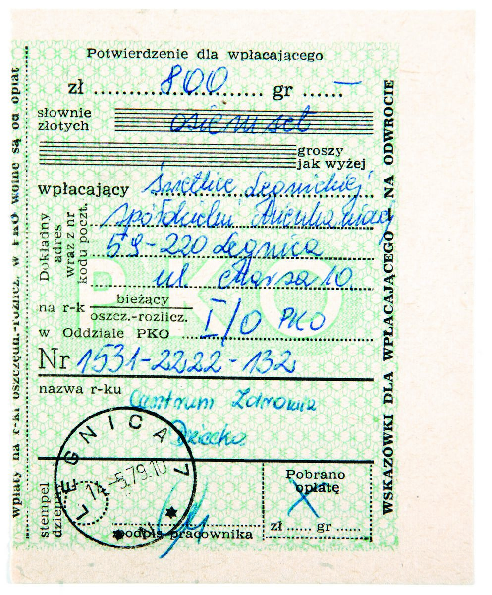 Dowód wpłaty na rzecz Centrum Zdrowia Dziecka, 1979 r., mat. arch. LSM
